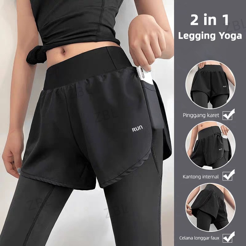 MATOUGUI - Legging 2 in 1 Wanita: Yoga, Olahraga, Zumba – Nyaman, Fleksibel & Tahan Lama