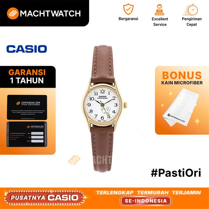 Jam Tangan Wanita Analog Casio LTP-1094Q-7B7RDF LTP1094Q Enticer White With Cat Dial Leather Band