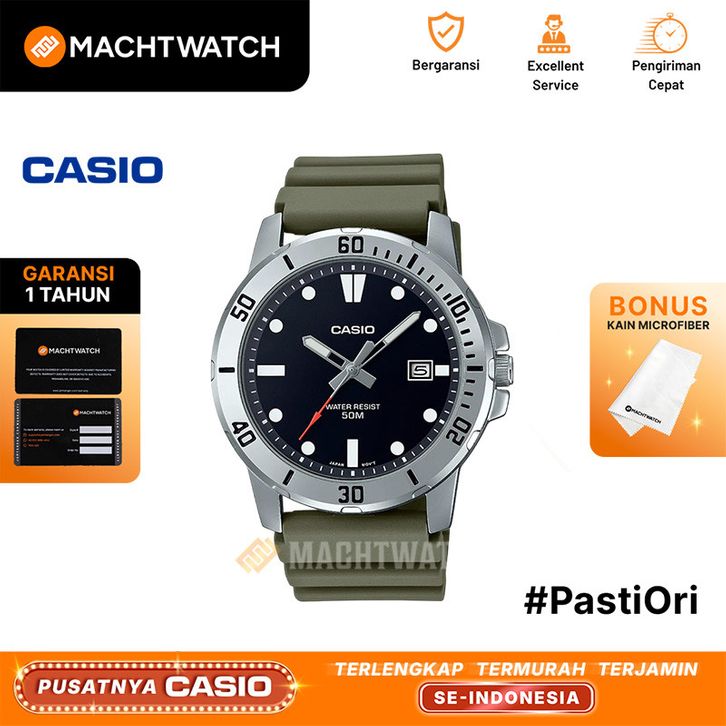 Jam Tangan Pria Casio General MTP-VD01-3EVUDF Men Black Dial Green Resin Band