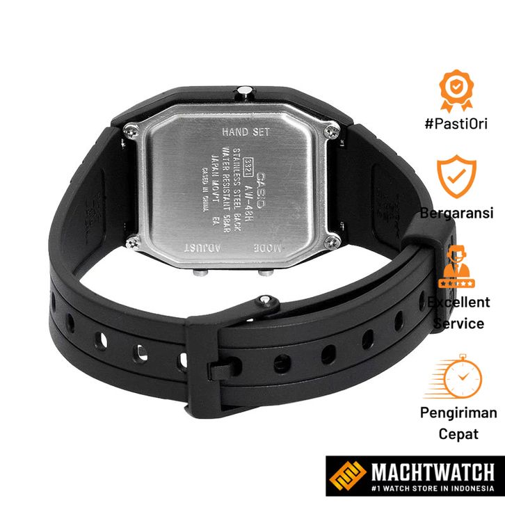 Jam Tangan Unisex Analog Digital Casio General AW-48HE-1AVDF AW48HE Dial Black Resin Band