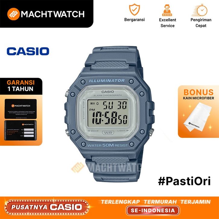 Jam Tangan unisex Digital Casio Standard W-218HC-2AVDF W218HC Illuminator Denim Blue Resin Band
