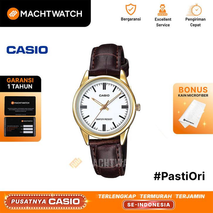 Jam Tangan Wanita Analog Casio General LTP-V005GL-7AUDF LTPV005GL White Dial Brown Leather Band