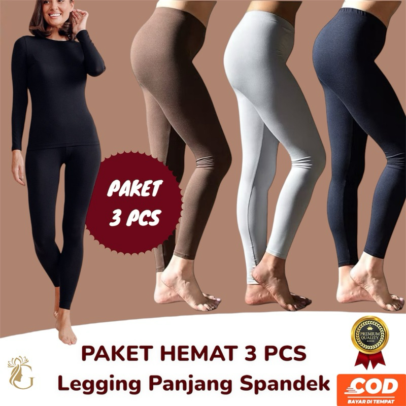 Paket Hemat 3 Pcs Celana Legging Panjang Spandeks Dewasa Terlaris Lejing standar Dan Jumbo Polos