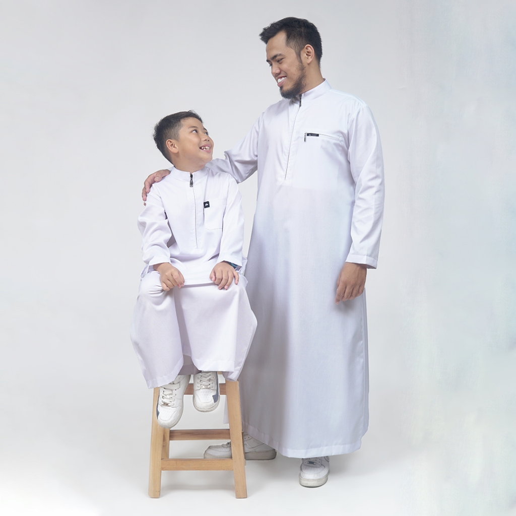 [Mall] KHOIRUMMAH JUBAH KHALIFAH COUPLE | GAMIS AYAH DAN ANAK LAKI LAKI LENGAN PANJANG - WHITE