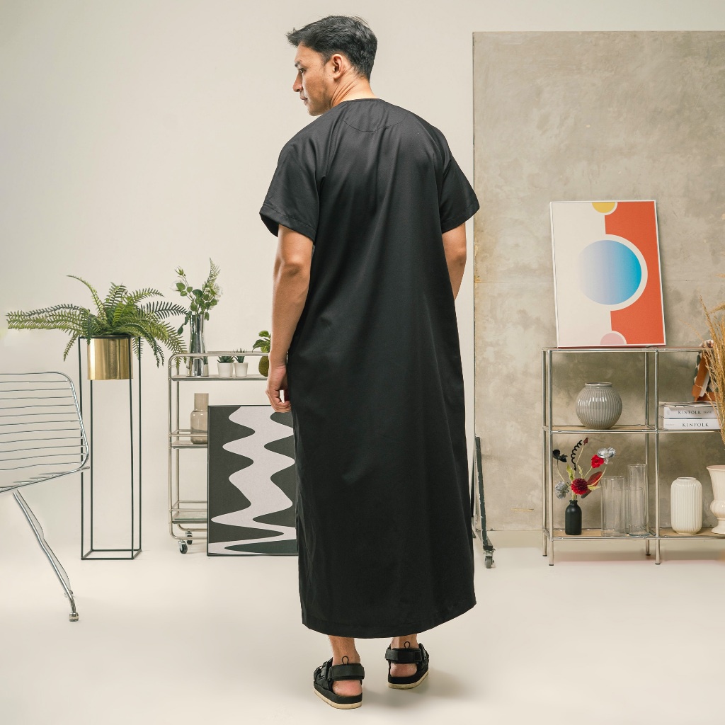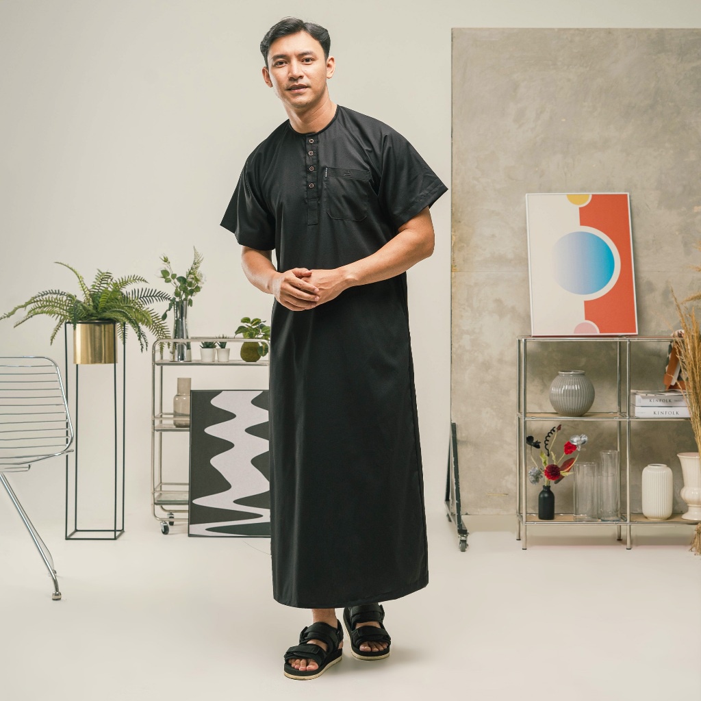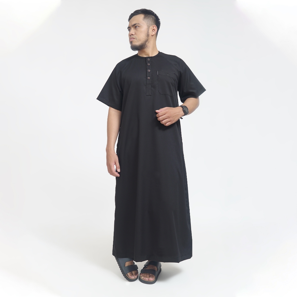 [Mall] KHOIRUMMAH JUBAH MUSA DEWASA - GAMIS MUSLIM PRIA DEWASA - JUBAH POLOS LENGAN PENDEK - BLACK