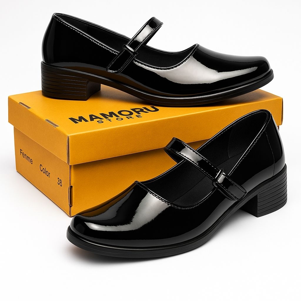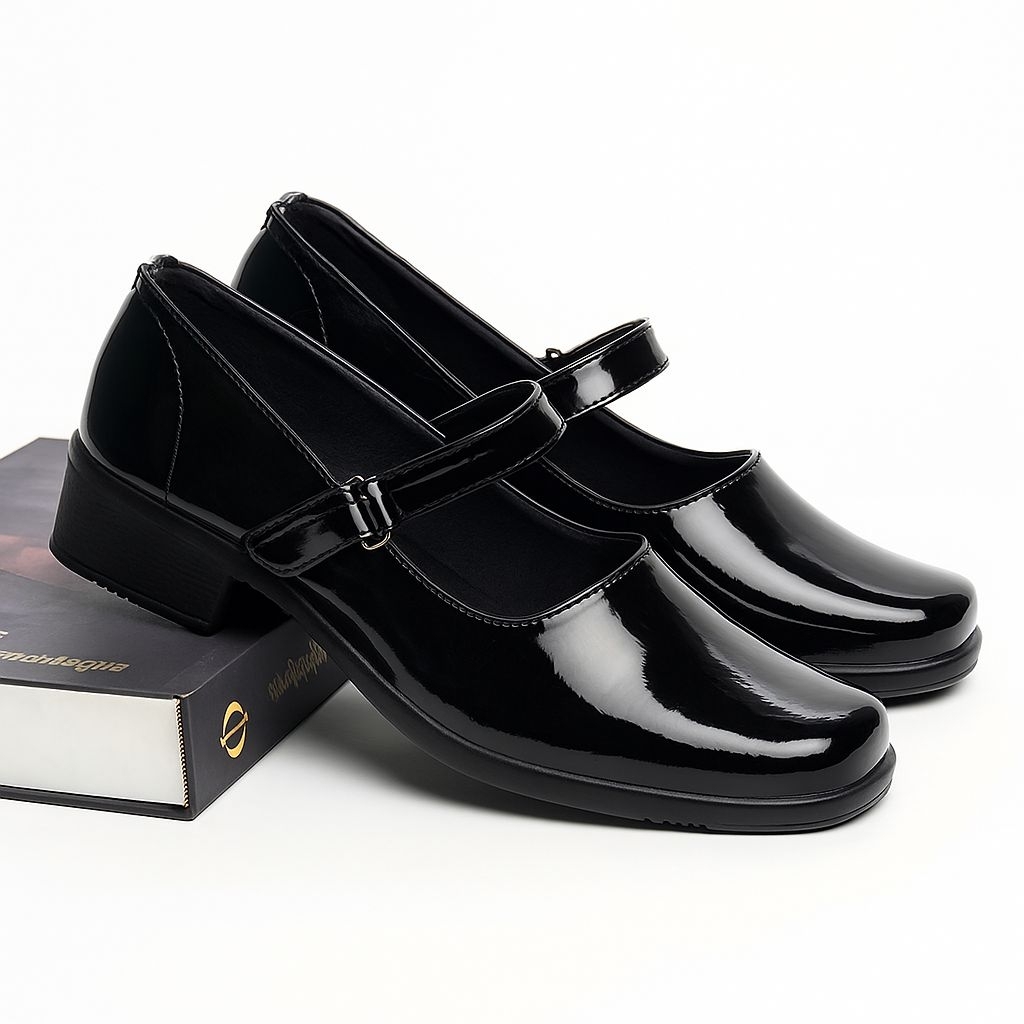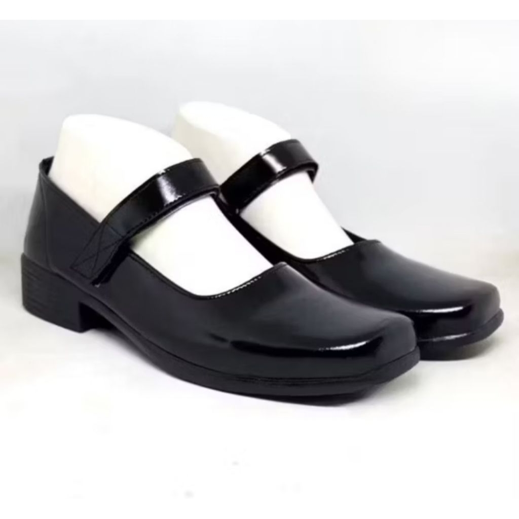 SEPATU PANTOFEL KULIT WANITA FORMAL KERJA GURU PNS PASKIBRA HITAM PASKIBRAKA GLOSY MENGKILAP