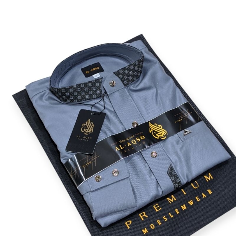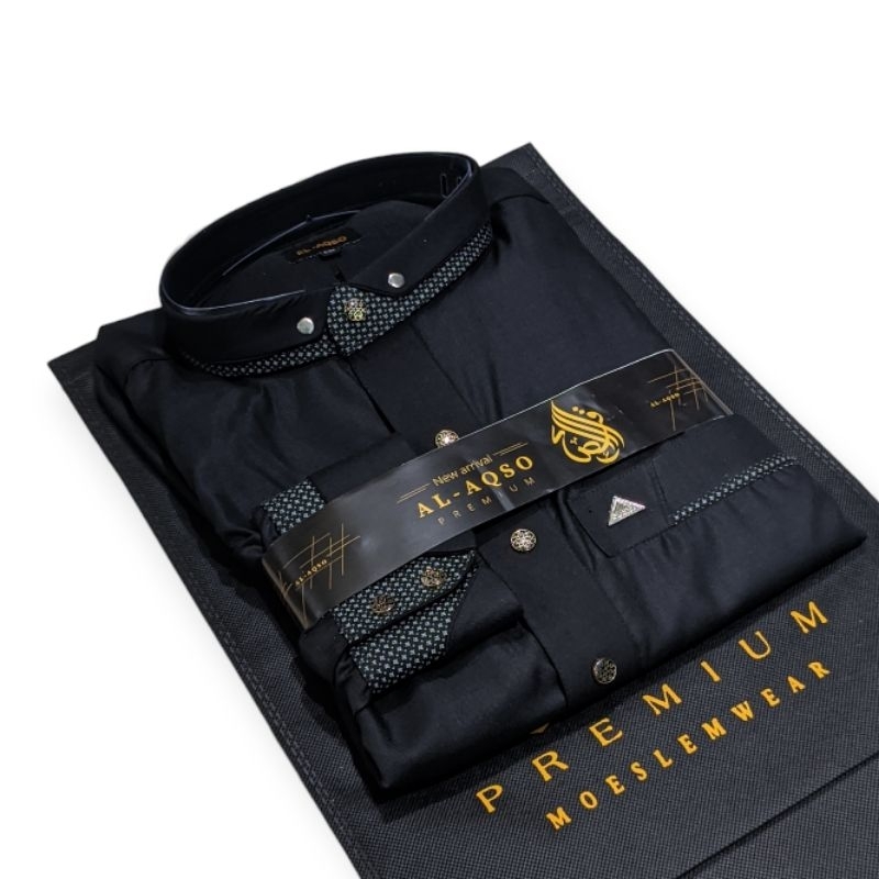 [Mall] PROMO JUBAH PRIA HITAM KOMBINASI MANSET JUBAH ALAQSO KATUN PREMIUM GAMIS SHOLAT