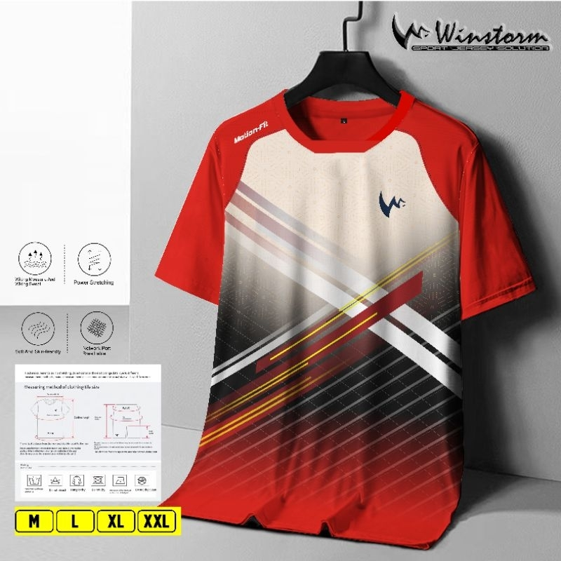 [Mall] winstorm morgan baju olahraga dewasa baju badminton kaos bulutangkis jersey voli print