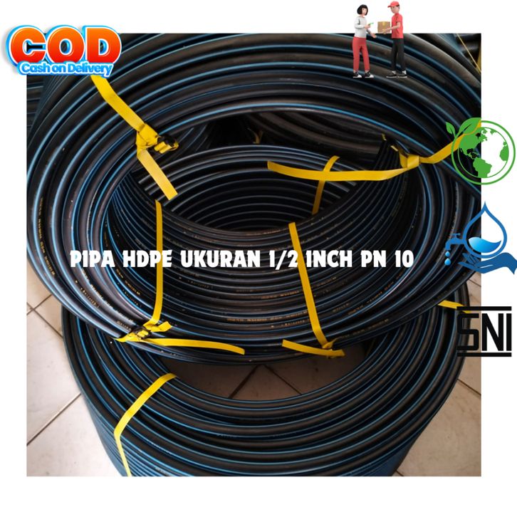 PIPA HDPE ATAU SELANG AIR UKURAN 1/2 INCH PN 10 OD 20MM PANJANG 1 ROL 100 METER