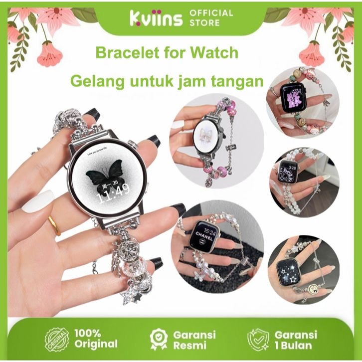 Kviins Tali untuk Jam Tangan Strap for iwatch Huawei Band 10/9/8, Huawei Fit 3, Xiaomi 8/9, Samsung Fit 3 Crystal Pendan