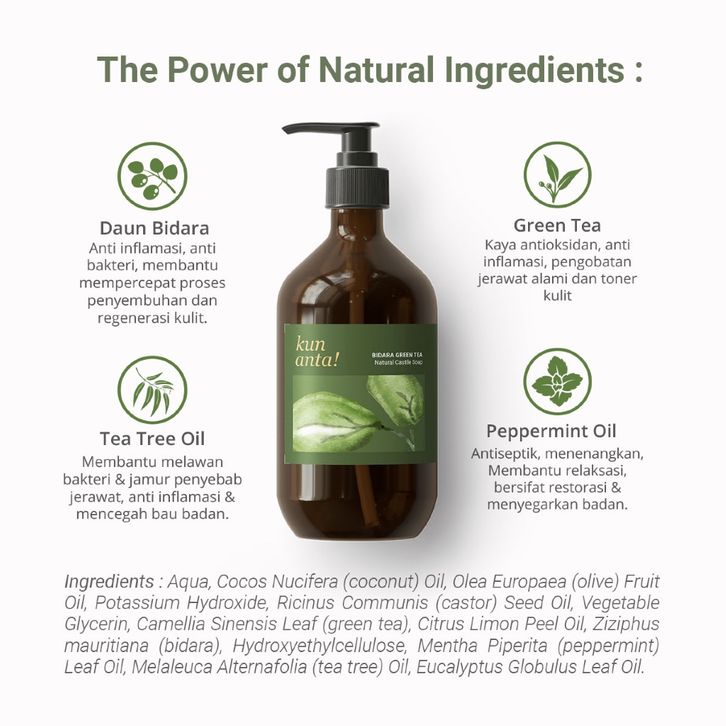sabun jerawat punggung Kun Anta Bidara9reen Tea Natural Castile Soap | Sabun Cair Alami