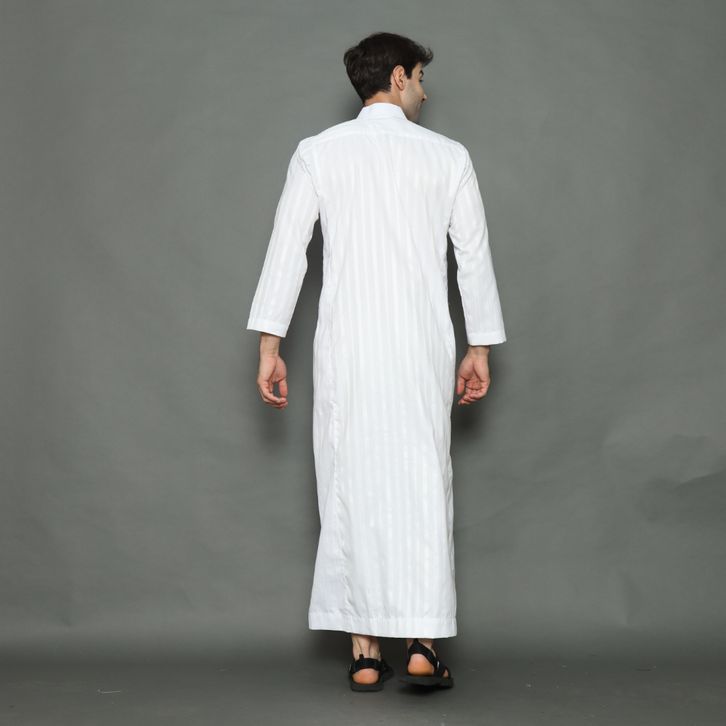 REV Gamis Jubah Arab Pria Dewasa Putih Motif Salur Lengan Panjang Thobee