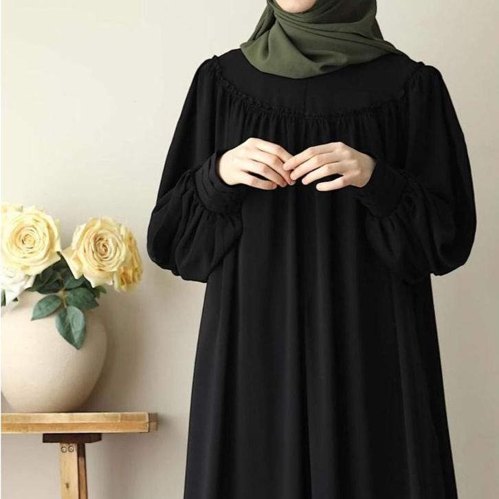 GF - KASUARI DRESS BAHAN JET BLACK GAMIS HITAM POLOS PREMIUM BAJU MUSLIM UMROH DAN HAJI