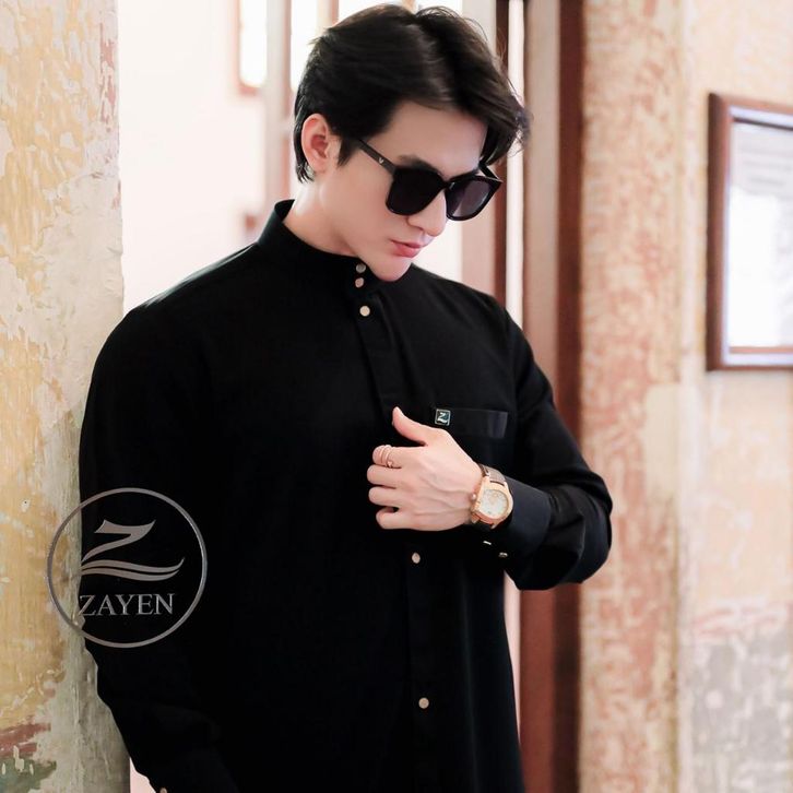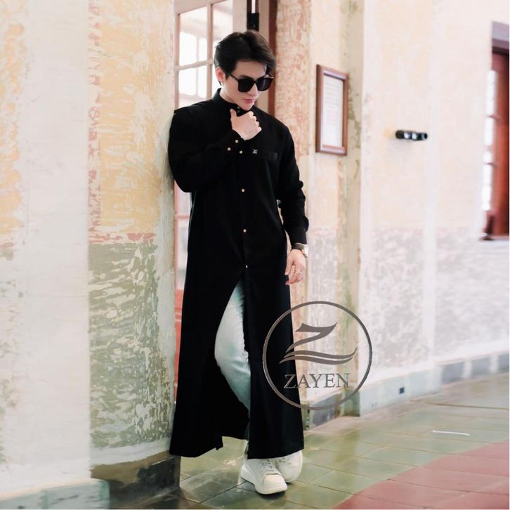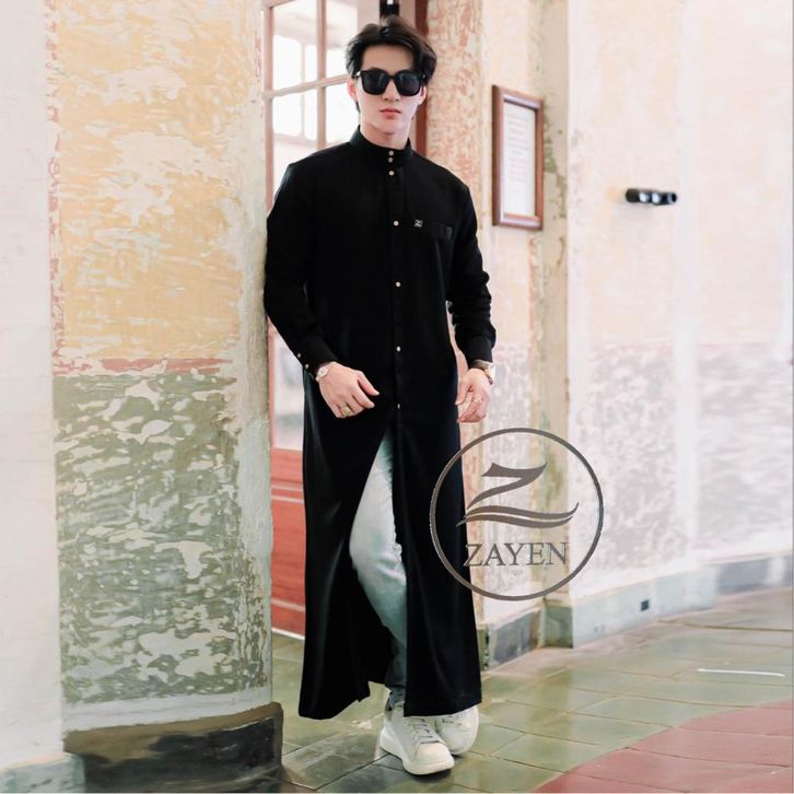Jubah Slimfit Zayen Gamis Jubah Pria Muslim jubah gamis pria Busana muslim jubah hitam Kancing Manset Panjang
