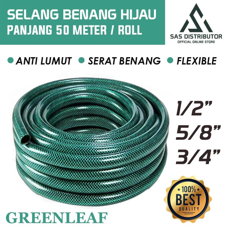(Per Roll) Selang Air Benang Hijau 1/2" - 5/8" - 3/4" inch 50 Meter / Selang Anti Lumut Serat Hijau