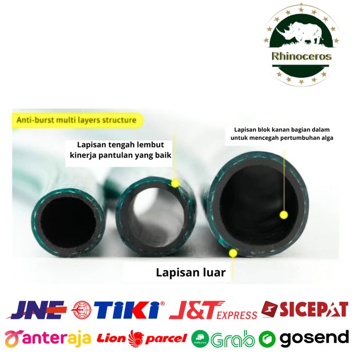 Selang Air Benang Hijau 5/8 50Meter Rhinoceros Slang Air Cuci Motor