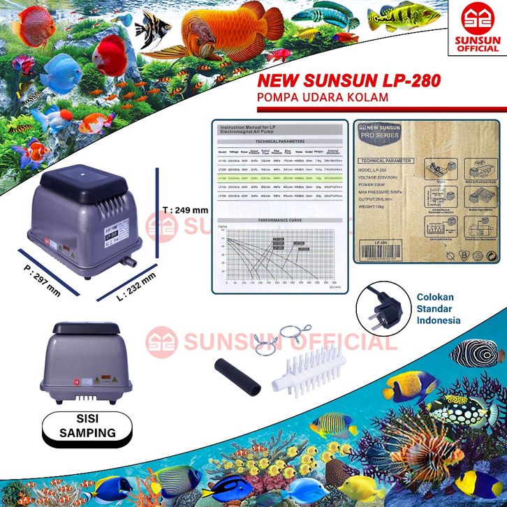 NEW SUNSUN AIR PUMP LP 150 / LP 200 / LP 280 POMPA UDARA KOLAM AERATOR