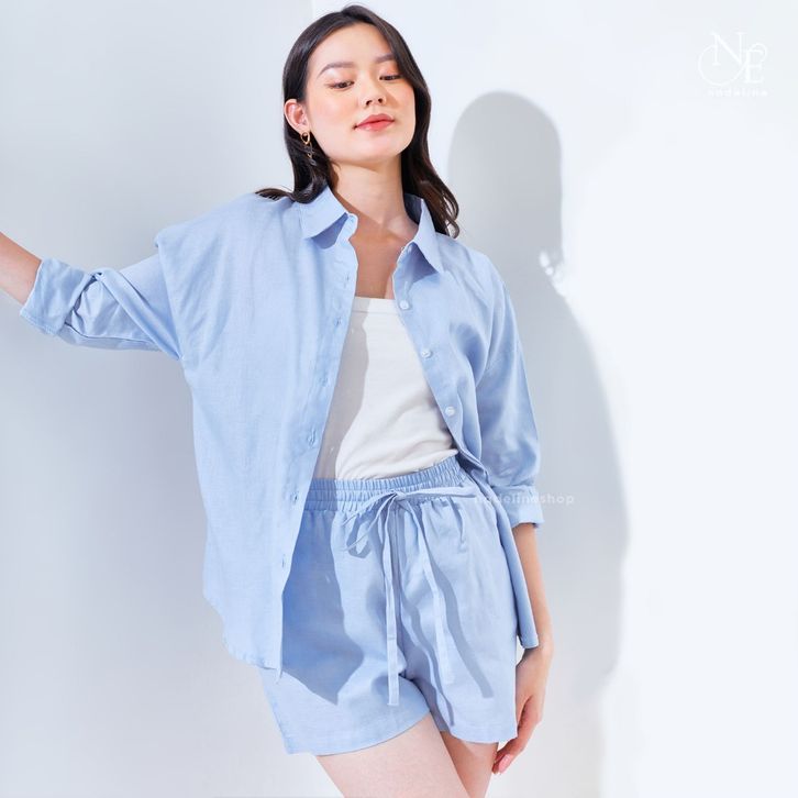 One Set Wanita Kekinian Korea Jumbo Rayon Hanyu One Set - Setelan Basic Wanita Kemeja dan Celana Pendek READY 2 ukuran