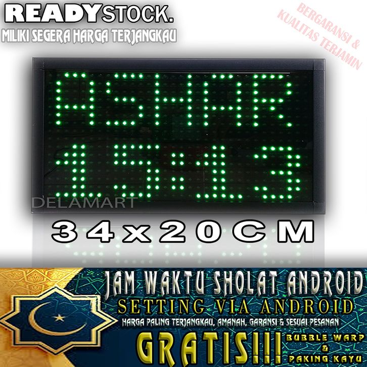 Jam Jadwal Waktu Shalat Digital Plus Buzzer 34x20CM