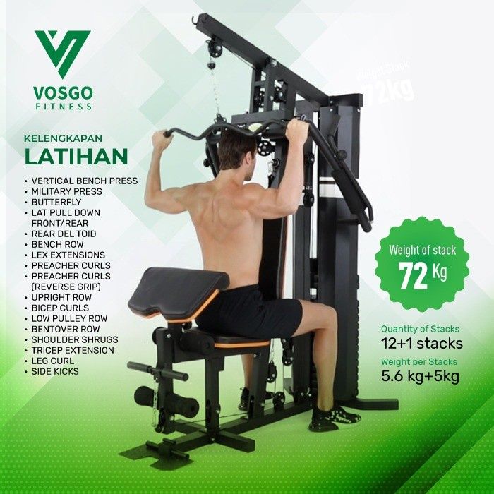 TERLARIS VOSGO ALAT OLAHRGA FITNESS MULTI HOME GYM 1 SISI GARANSI RESMI BROOKLYN PRO