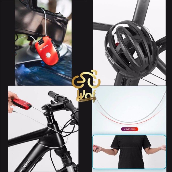 TERLARIS ROCKBROS RK0302 KUNCI GEMBOK SEPEDA HELM TELESCOPIC BICYCLE LOCK CABLE