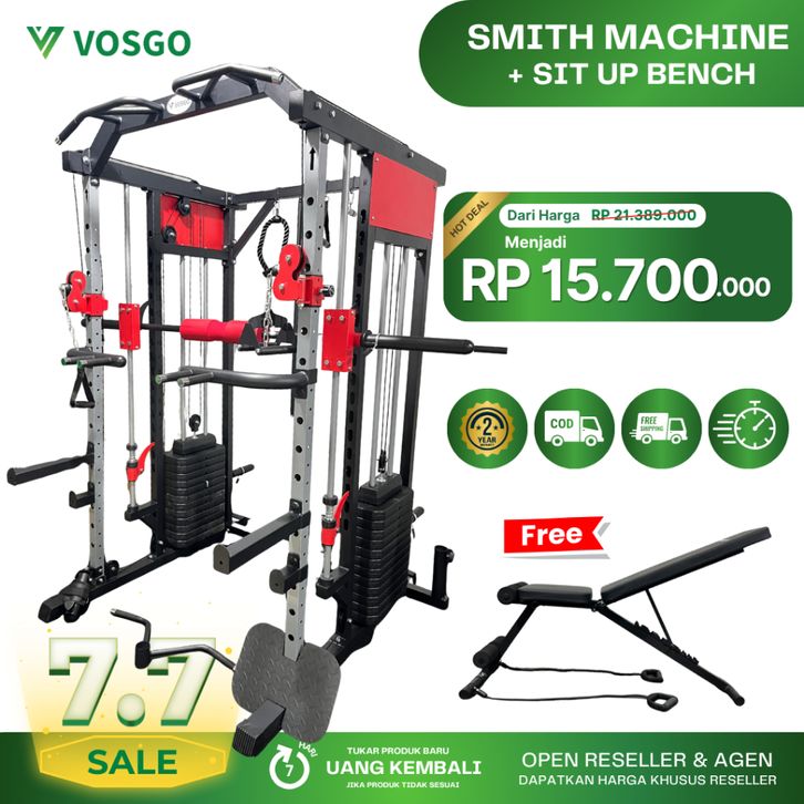 TERLARIS SMITH MACHINE SQUAT RACK MULTIFUNGSI VOSGO FITNESS PLUS BENCH
