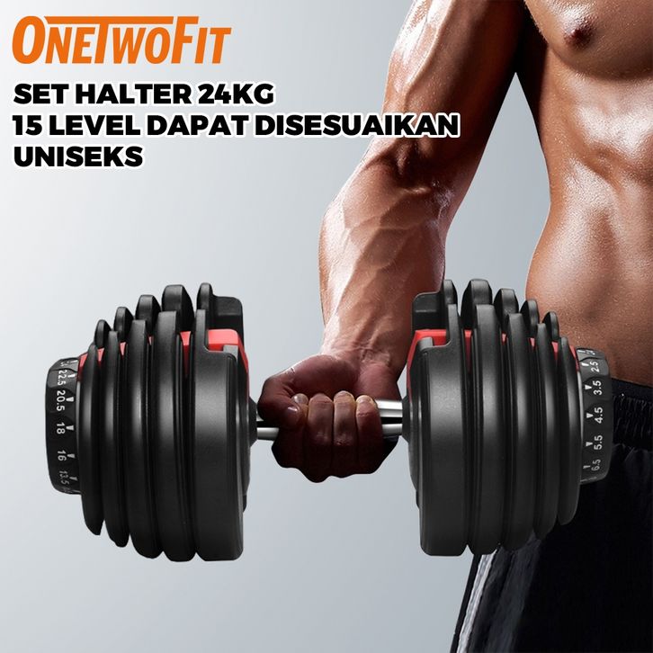 TERLARIS ONETWOFIT 24KG DUMBBELL YANG TINGKAT 15 DAPAT DISESUAIKAN PERALATAN KEBUGARAN