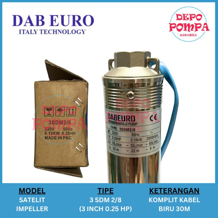 Pompa Satelit DABEURO 3 INCH 0.25 HP KOMPLIT KABEL BIRU ASLI