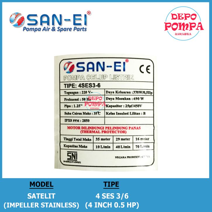 Pompa Air Satelit SAN EI 4 INCH 0.5 HP (STAINLESS) TANPA KABEL
