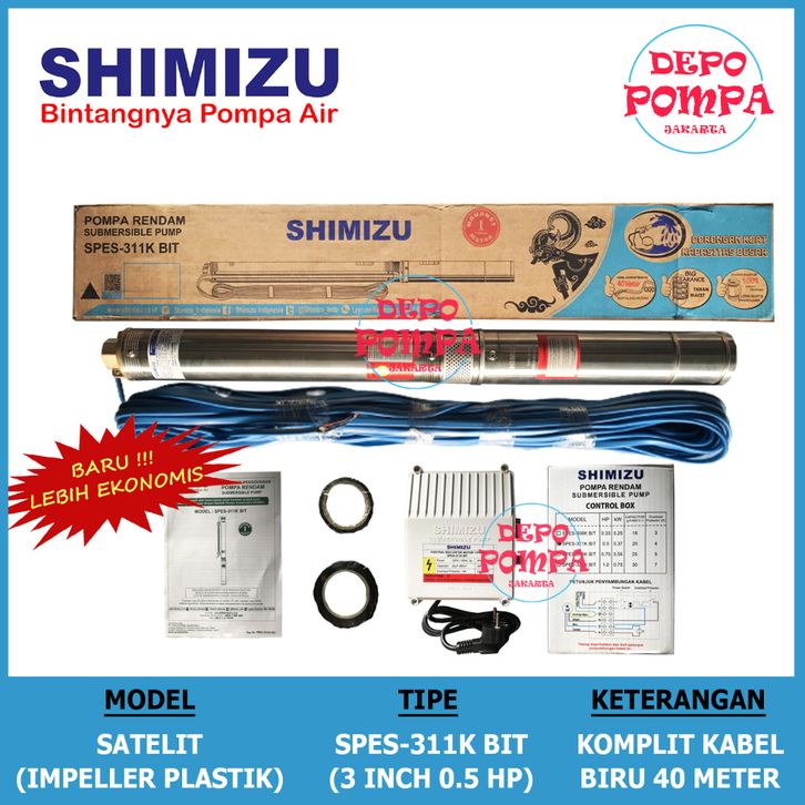 Pompa Air Satelit SHIMIZU 3 INCH 0.5 HP KOMPLIT KABEL BIRU-ECO SERIES