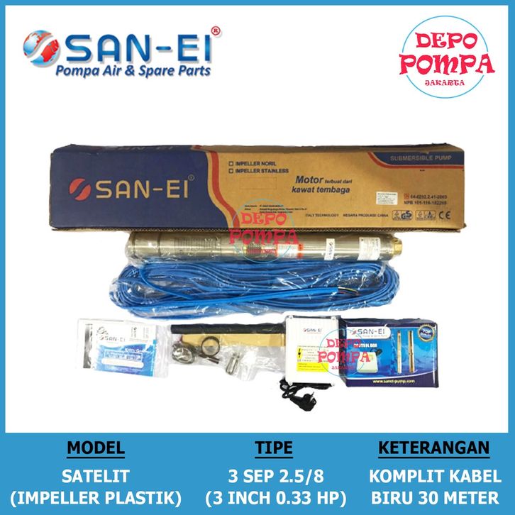 Pompa Air Satelit SAN EI 3 INCH 0.33 HP KOMPLIT KABEL BIRU ASLI