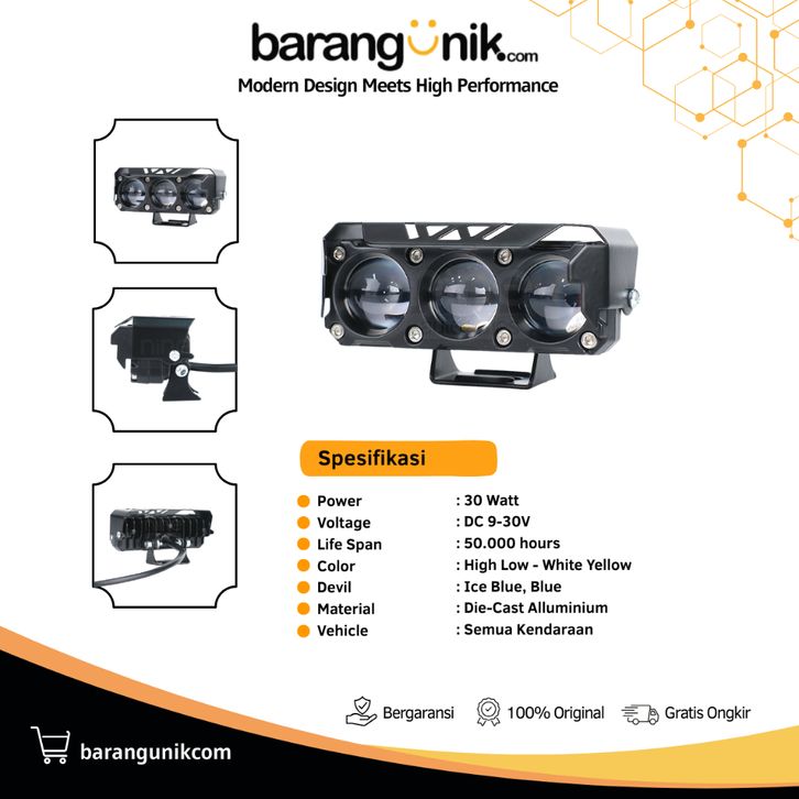 Lampu SQL 3 Mata Q3S LUMINOSLED Devil Super Terang Motor Mobil Waterproof Tembus Hujan Kabut