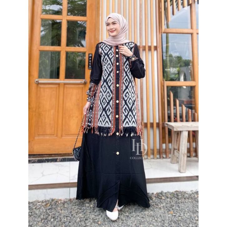 HD Collection Gamis Etnik Full Kancing Baju Pesta Wanita Matt Twill Kombinasi Tenun Terbaru 2025