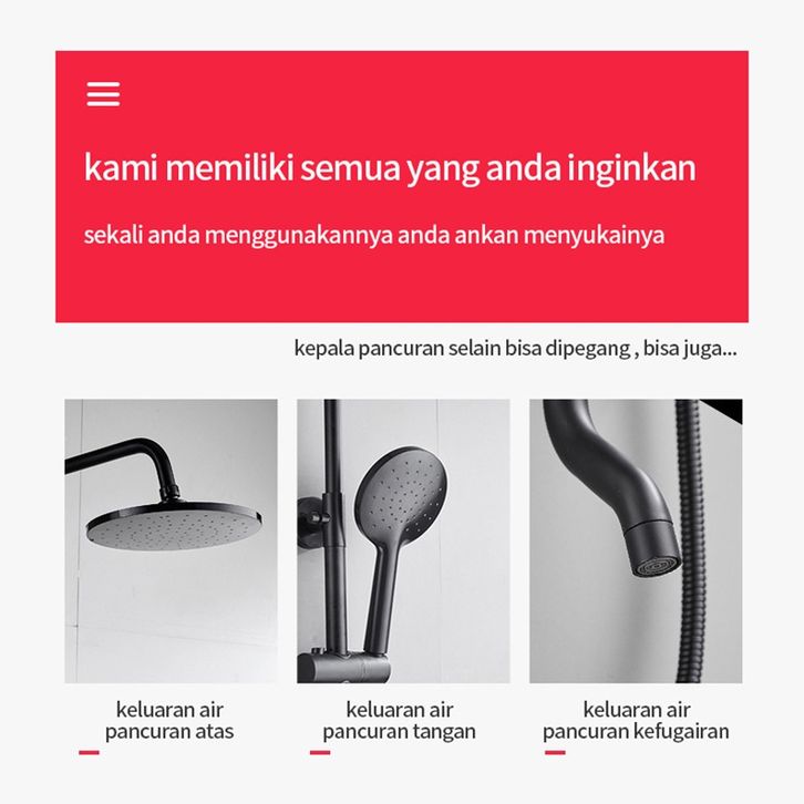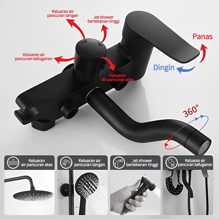TERLARIS YEE.SALL SET SHOWER KAMAR 3IN1 DENGAN KERAN / SET SHOWER HITAM SEDERHANA / SET SHOWER BULAT FULL TEMBAGA