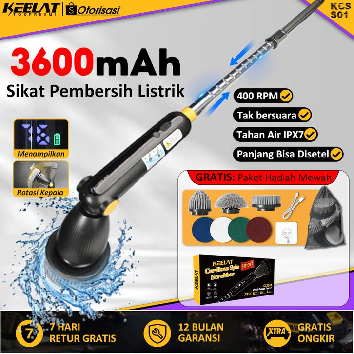 KEELAT-KCSS01 Sikat Kamar Mandi Elektrik Tanpa Kabel – Pembersih Lantai & WC Multifungsi, Tahan Air, Portable