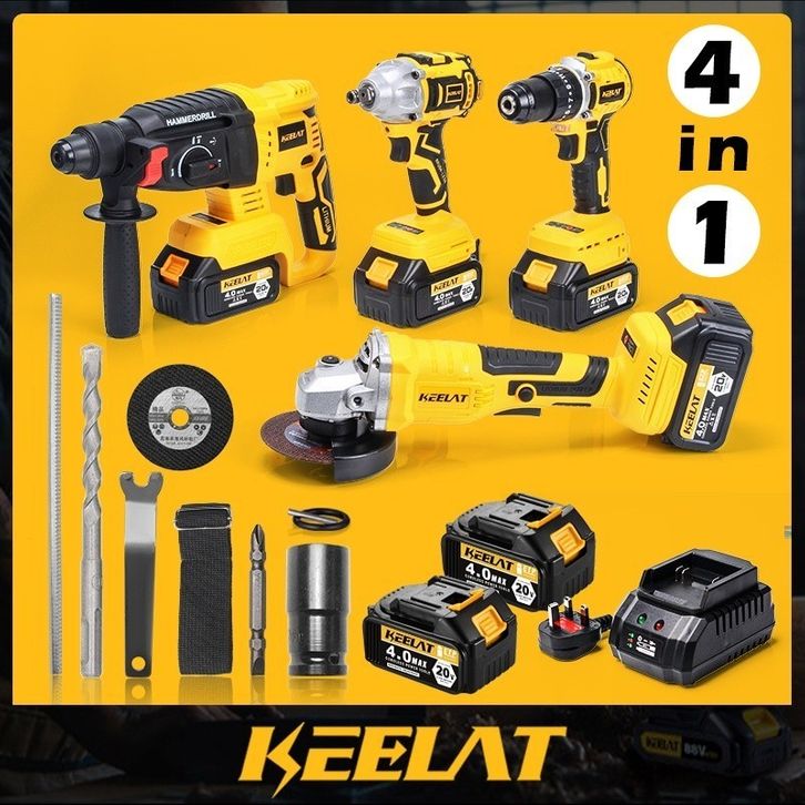 【KEELAT】 4-in-1 Brushless Mesin Bor Cordless Impact Wrench Impact Drill Hammer Drill Angle Grinder Same LXT