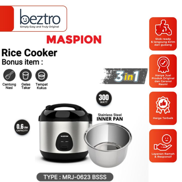 Maspion Rice Cooker MRJ 0623 BSSS Magic Com 0,6 Liter 3in1 MRJ0623BSSS Stainless Steel Inner Pot