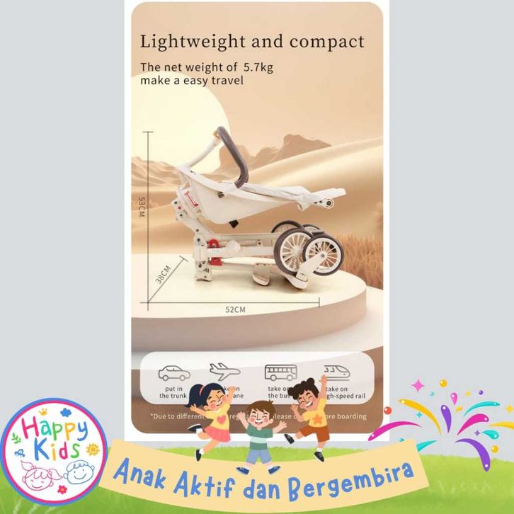 TERLARIS STROLLER BAOBAOHAO V7 LIPAT 360 DERAJAT COKELAT/BEIGE