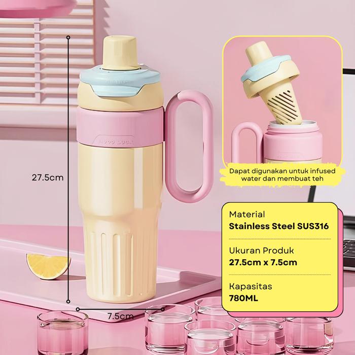 Funnycook Tumbler Stainless Steel Ukuran 780ml Botol Minum Tahan Panas Dan Dingin Aesthetic Bottles Water Kitchenware