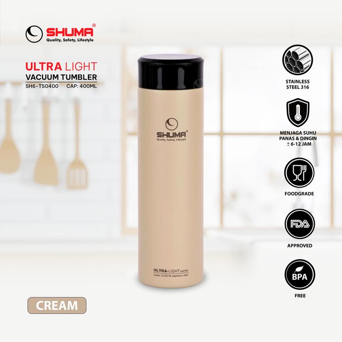 SHUMA S/S 316 Ultra light vacuum Tumbler 400 ML stainless steel botol termos Wadah Minuman - Cream