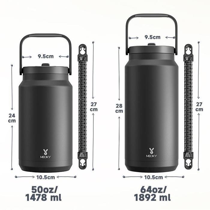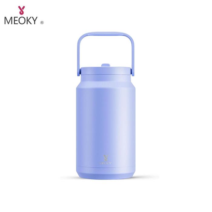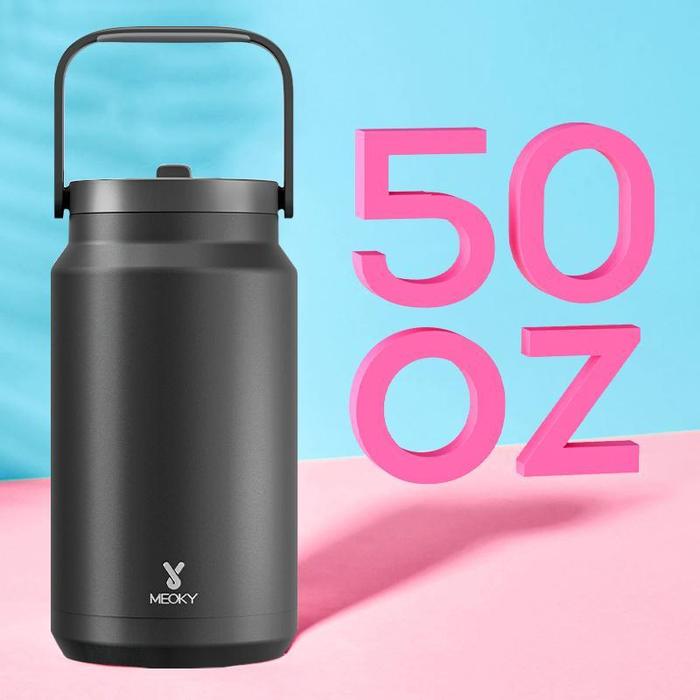 Meoky Botol Minum Termos Kapasitas Besar 50 oz/64 oz, dengan Straw Lipat dan Dua Cara Minum, Botol Stainless Steel Anti