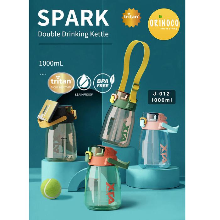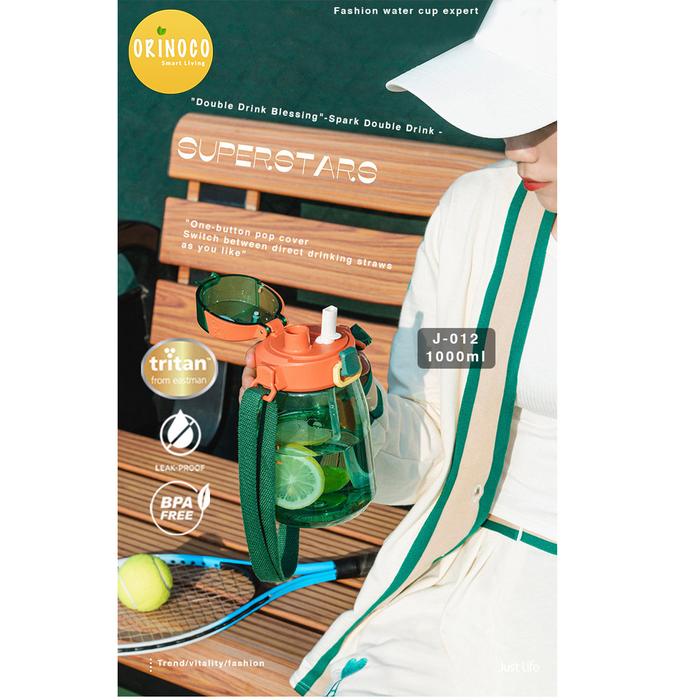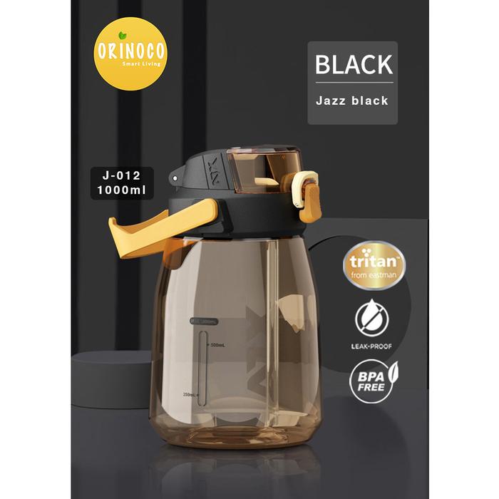 Orinoco Botol Minum Besar Plastik J-012 Tali Panjang 1000ML Anti Tumpah With Portable Straw - Black