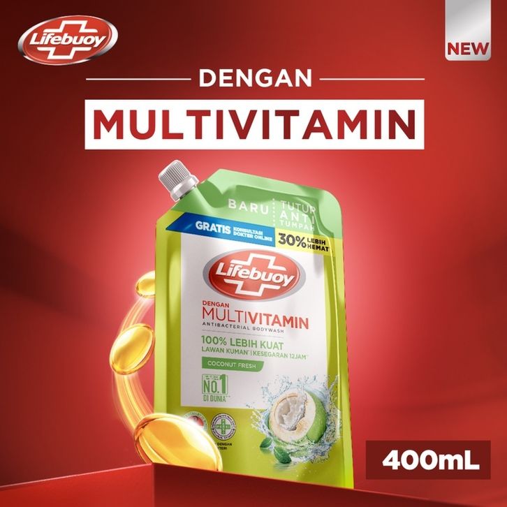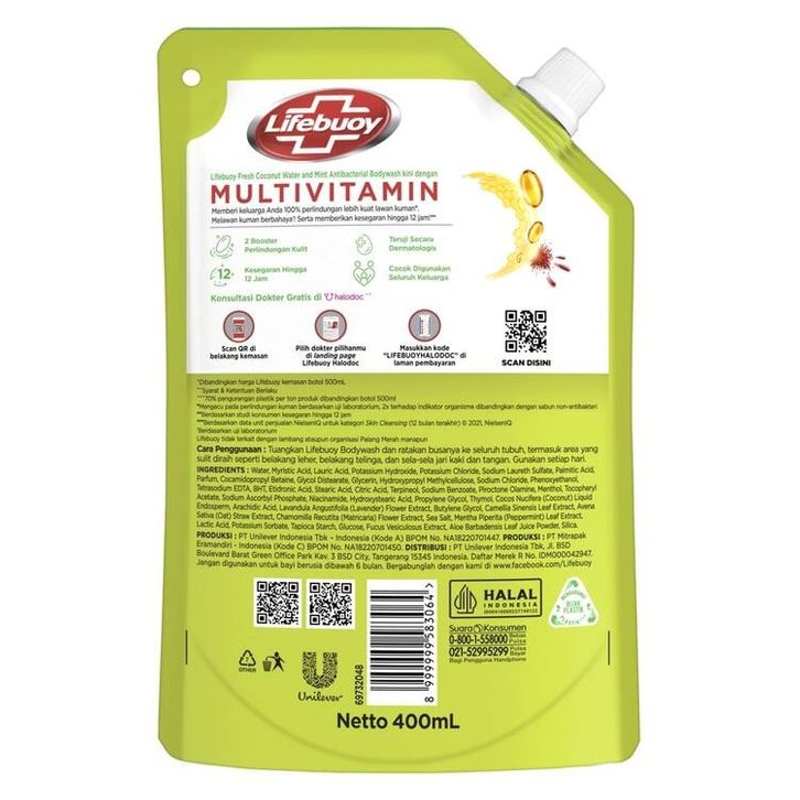 Sabun Mandi Cair Promo Lifebuoy Body Wash Refill Fresh Coconut Water & Mint 400ml