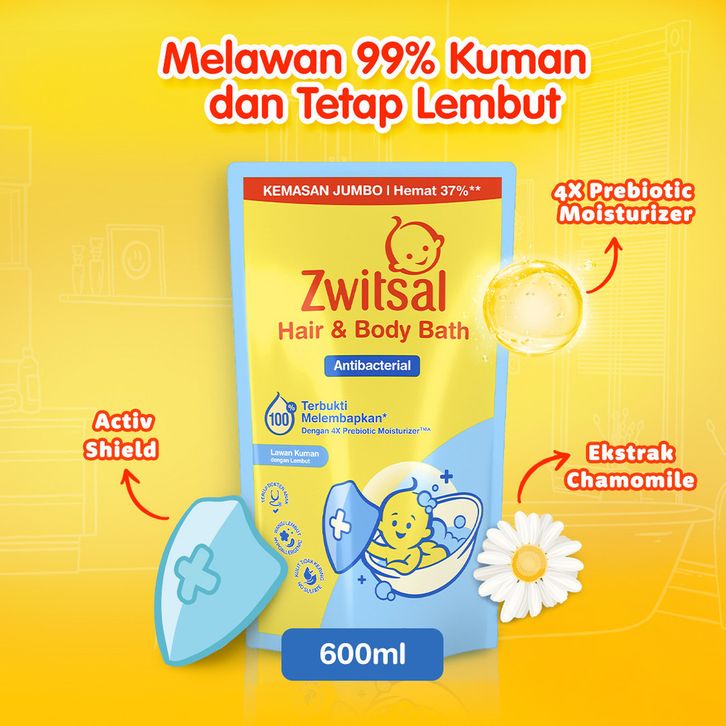 Sabun Mandi Cair Promo Zwitsal Baby Bath Hair & Body Antibacterial 600 mL - Sabun Bayi