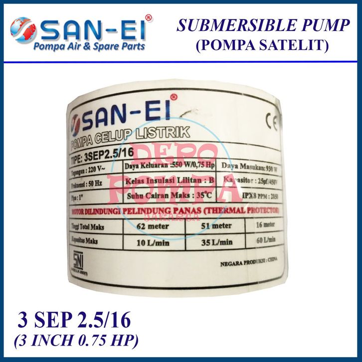 Pompa Air Satelit SAN EI 3 INCH 0.75 HP / Satelit 3/4 HP TANPA KABEL