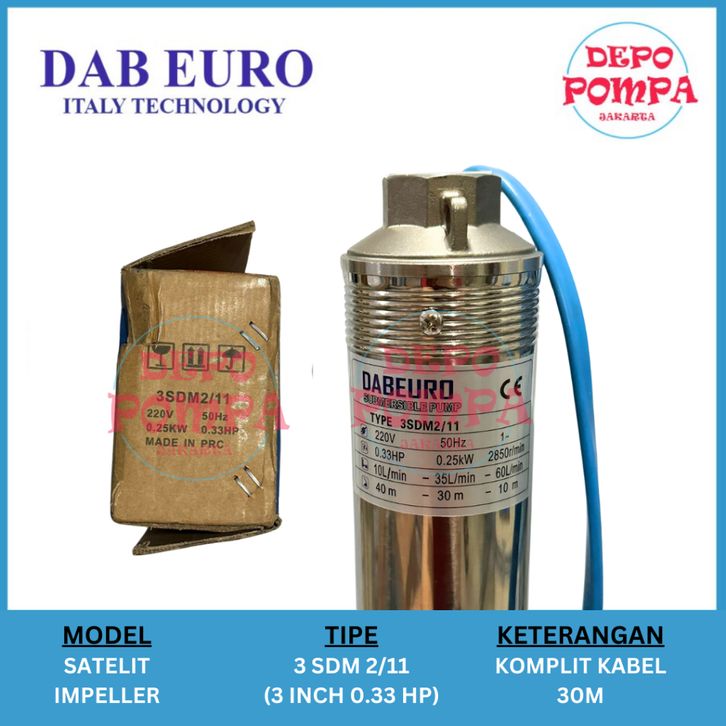 Pompa Satelit DABEURO 3 INCH 0.33 HP KOMPLIT KABEL BIRU ASLI