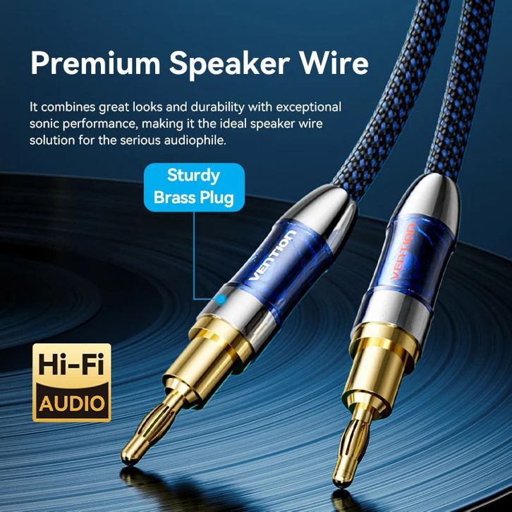 Vention Kabel Speaker Jack Dual Banana Plug Male to Male G0Id Plated HFi Pro Series