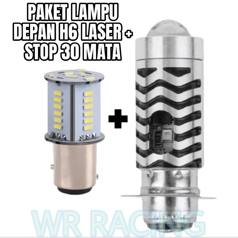 ( PAKET HEMAT ) LAMPU LED DEPAN H6 LASER SENJA + LAMPU STOP BELAKANG 30 MATA RUNNING SEMUA MOTOR