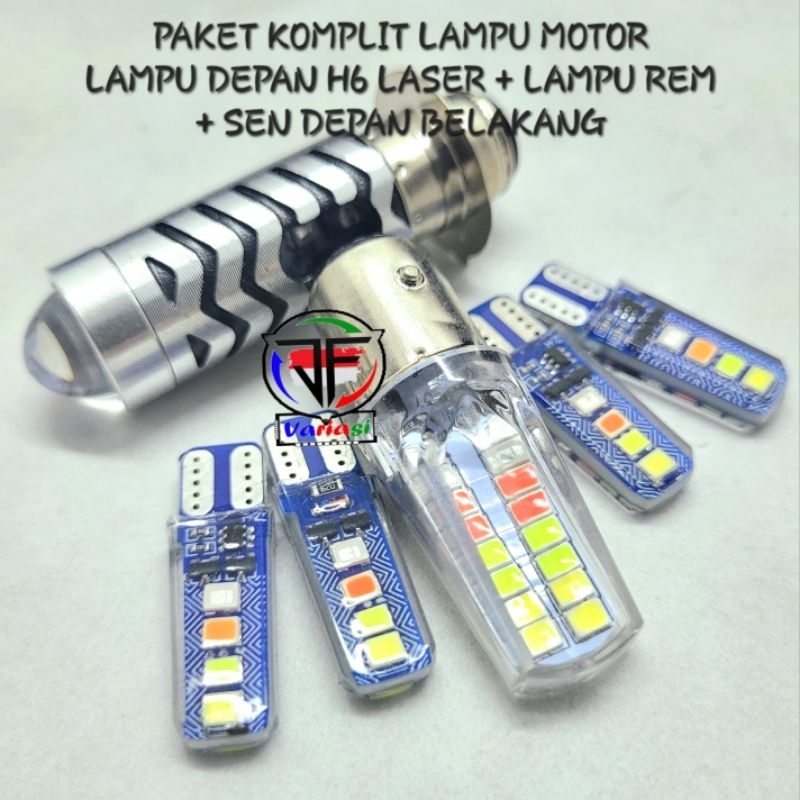 PAKET KOMPLIT Lampu Motor ( H6 Laser Putih Kuning + Stop Rem Running Pyramid BOLVAN RGBW + Sen Jelly Kedip 4 Warna RGBW