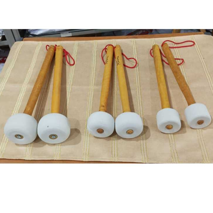 Sepasang Stik bass drum dan Tenor drum, Spons putih gagang kayu warna natural